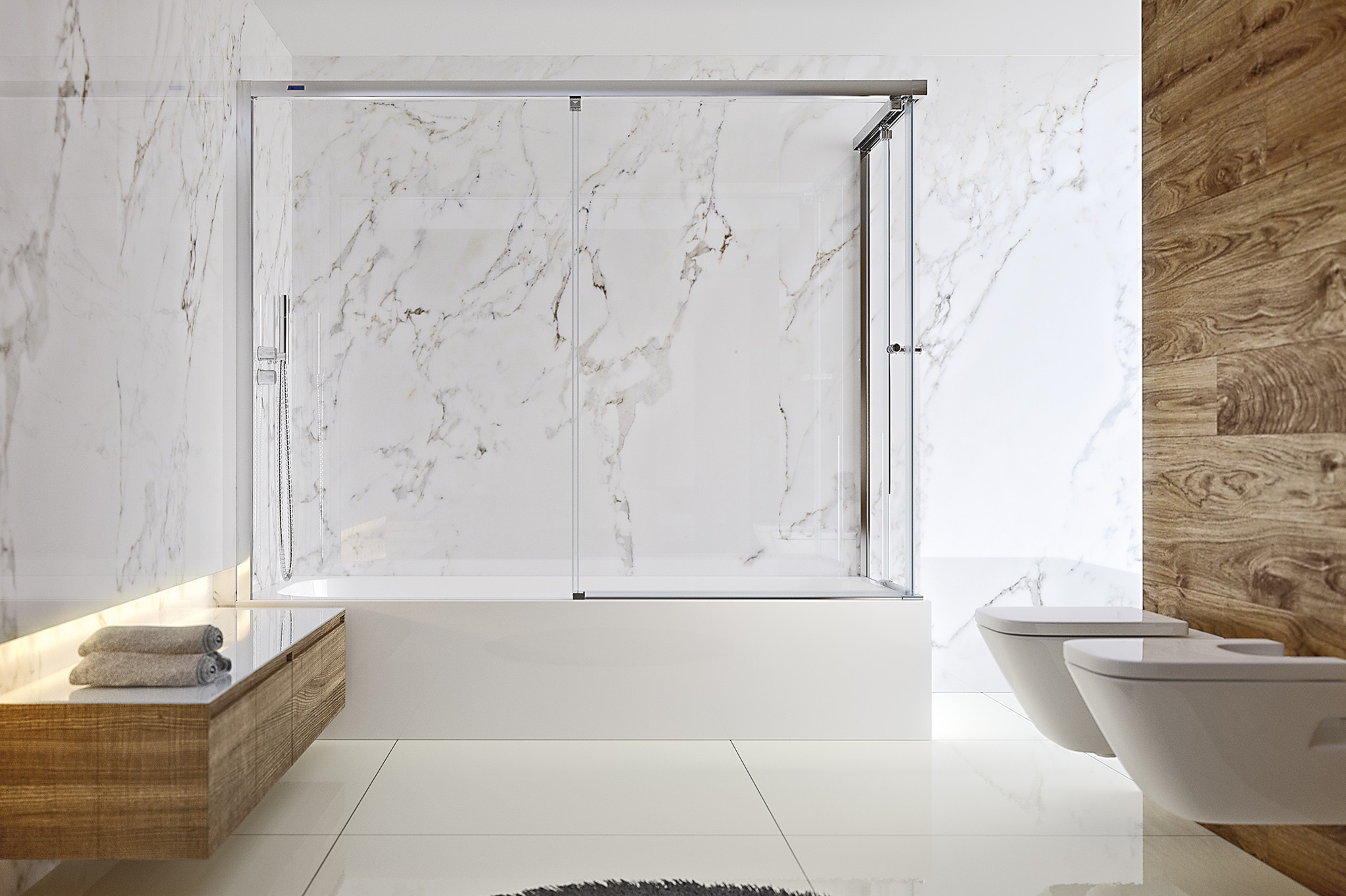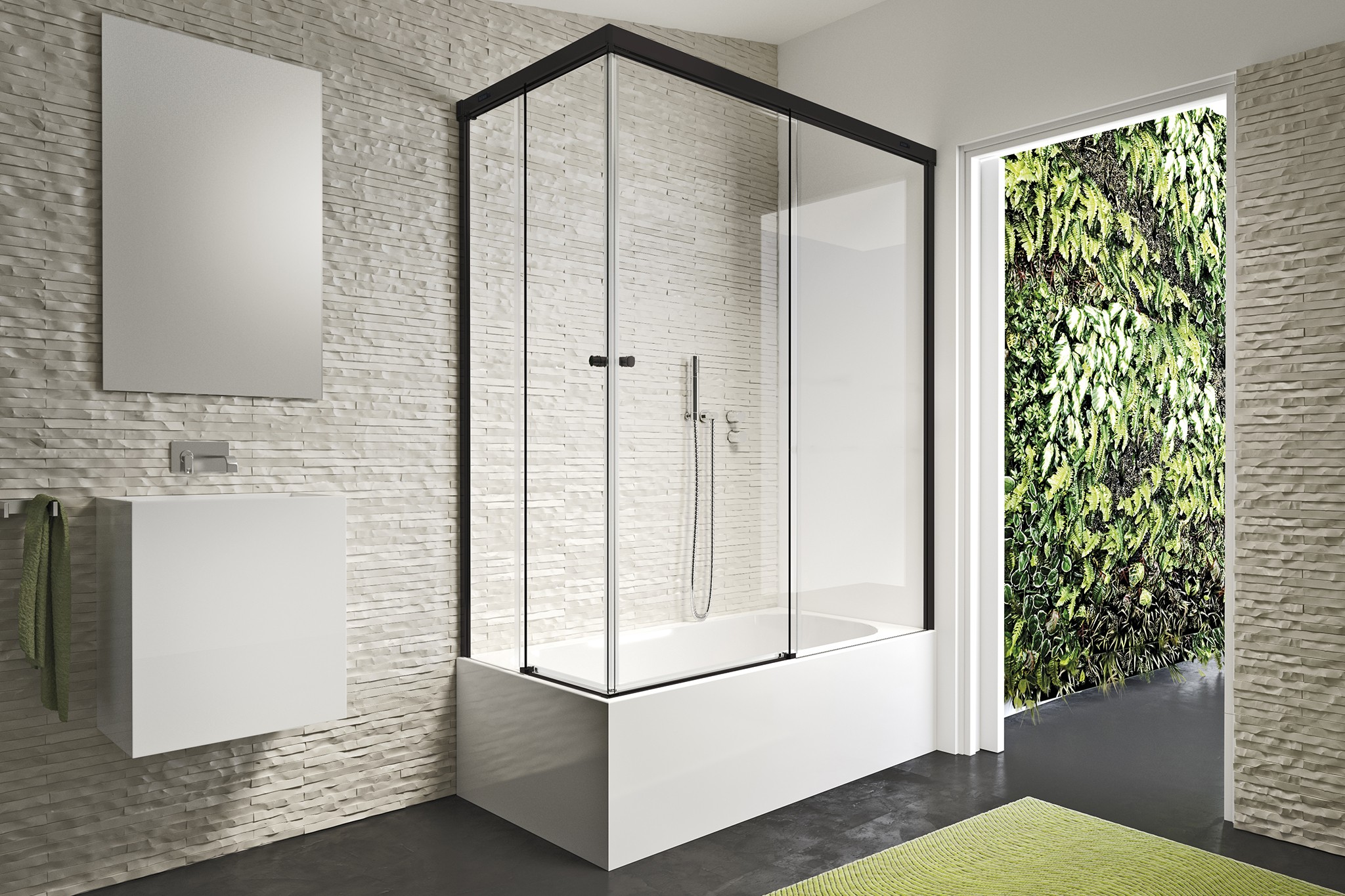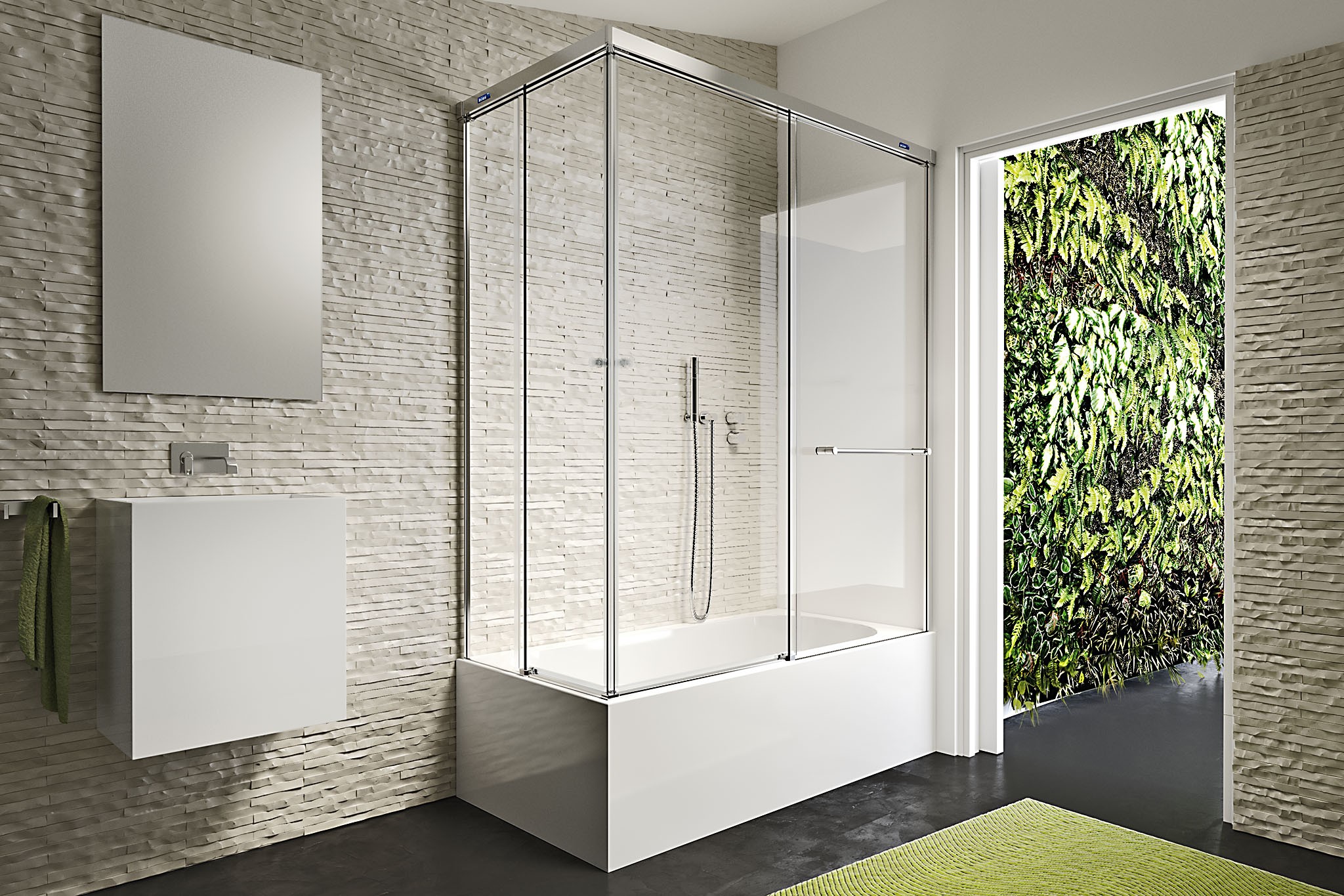 – 2 fijos + 2 puertas correderas para bañera en ángulo